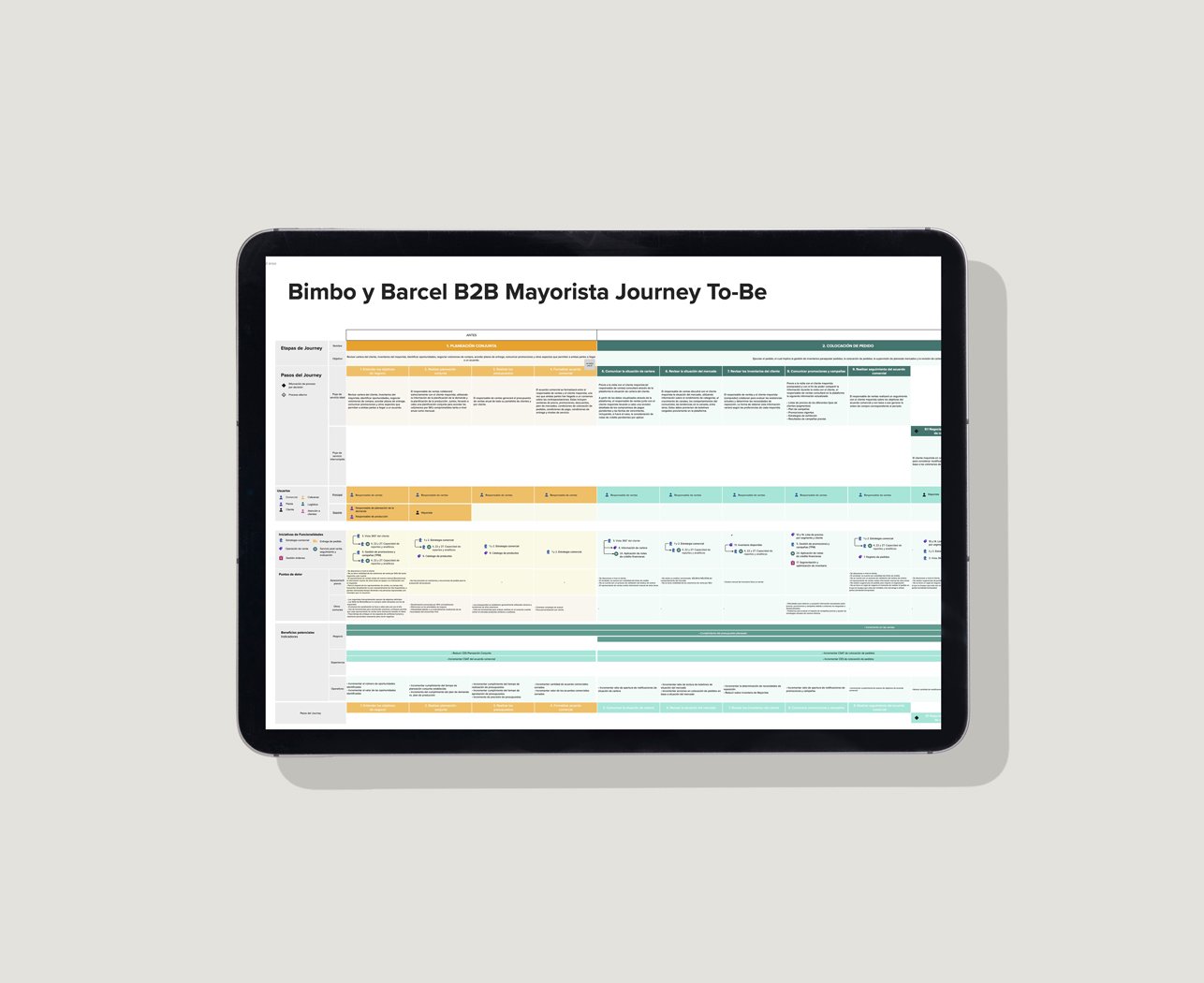 For this project, I was part of supporting the Bimbo and Capgemini Commercial team in understanding the relationship between the wholesale user's customer journey and the functionalities proposed by the product area, in order to confirm them, and then be able to work on the functional and technical design (architecture) and integrate them correctly, mainly in the commercial, order, delivery and after-sales processes.