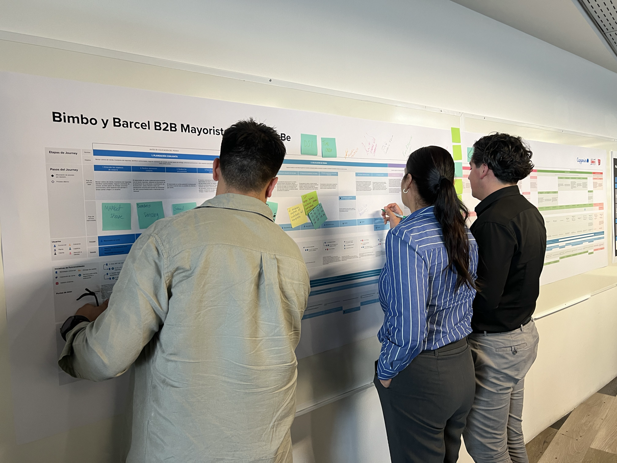 Through two co-creative workshops, a preliminary visualization of the Wholesaler's current Customer Journey Map was presented to understand, discuss, and define the position of the functionalities to be designed and developed, creating coherence and a general understanding among the Capgemini and Bimbo team members.
